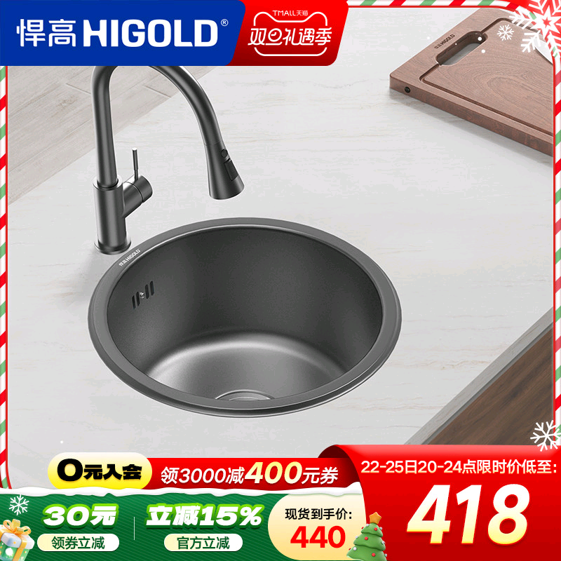 推荐理由:悍高单槽水吧台圆形水槽方槽家用304不锈钢纳米水槽洗菜盆洗碗池