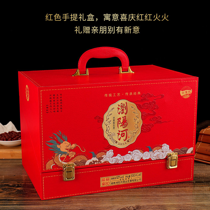 1浏阳河龍苏宴80厂家直销52度浓香型白酒500ml*6仿皮箱礼盒装