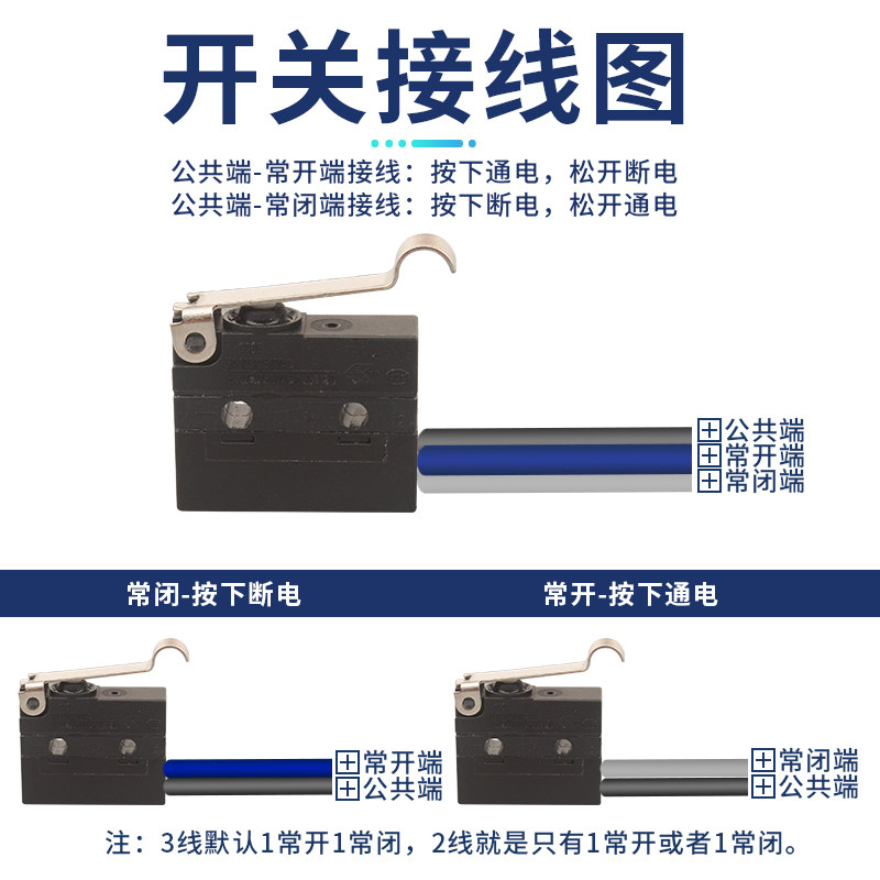 推荐理由:防水微动开关2/3脚汽车叉车防油常开/闭带线滚轮小型行程限位开关