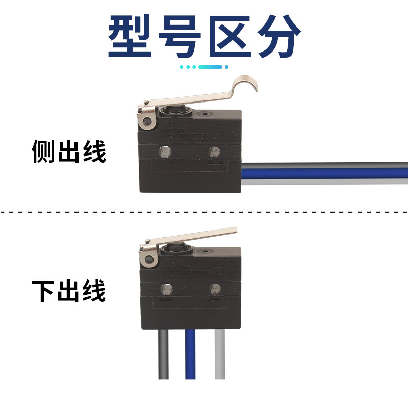 防水微动开关2/3脚汽车叉车防油常开/闭带线滚轮小型行程限位开关