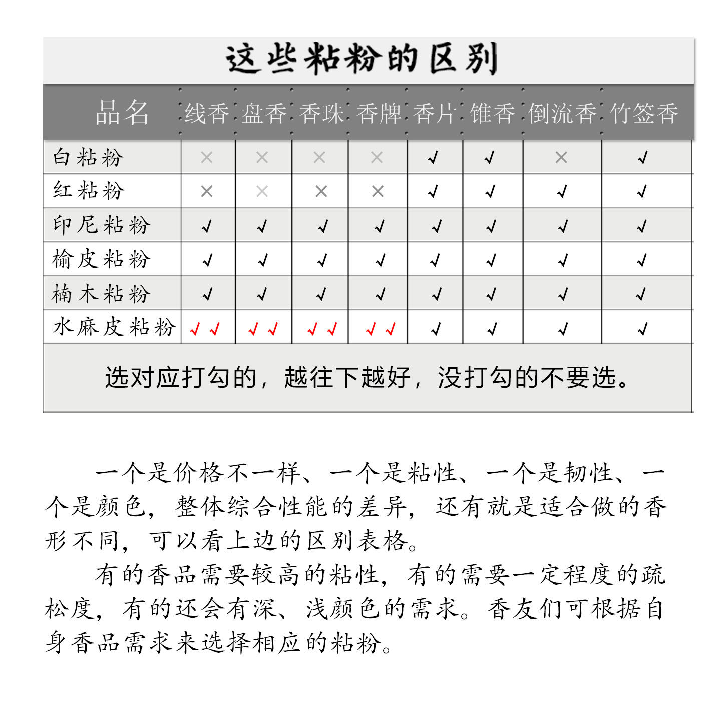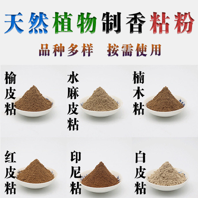 120目天然印尼楠木榆皮水麻皮制香粘粉做香锥线盘香珠香牌黏胶粉