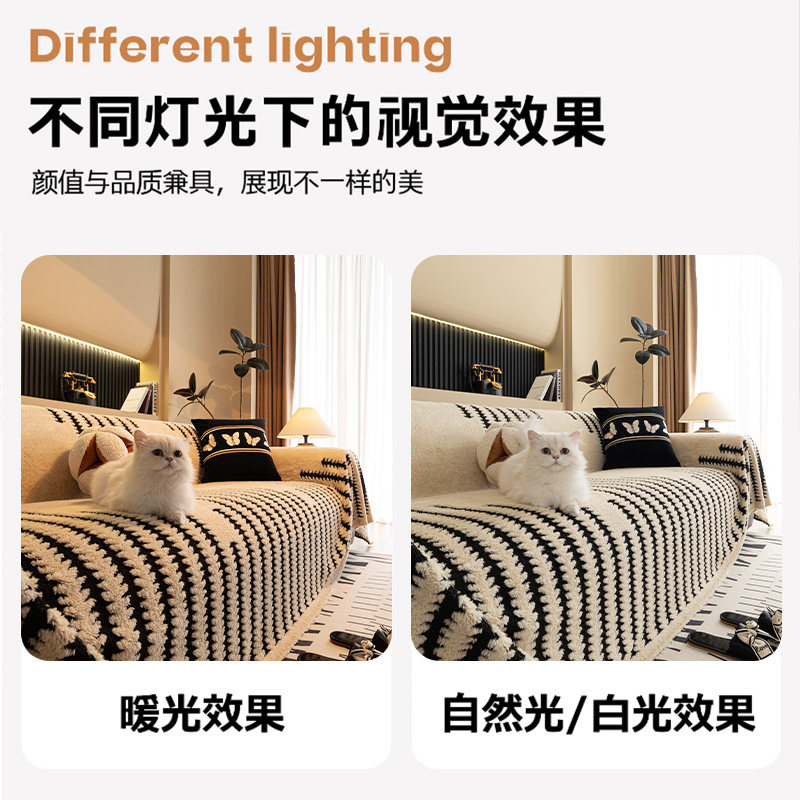 毛绒沙发盖布冬加厚防滑沙发巾轻奢高级感一片式坐垫全包套罩毯子