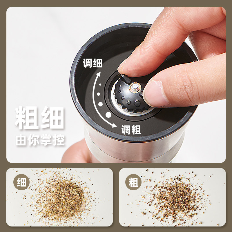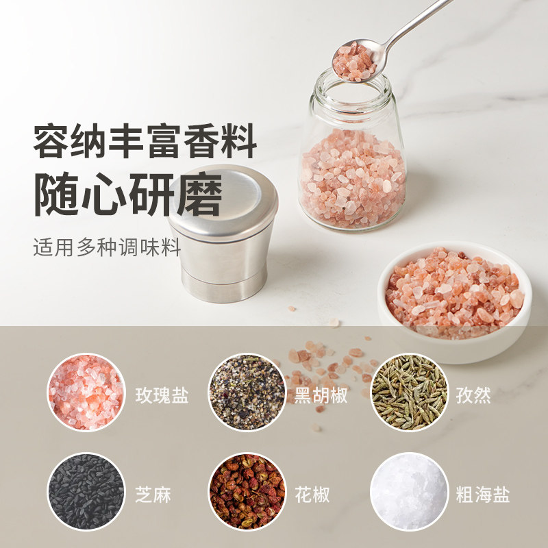 推荐理由:物鸣胡椒研磨器家用手动不锈钢现磨海盐花椒调料瓶黑胡椒粉研磨瓶