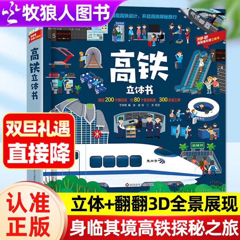 高铁立体书呦呦童揭秘3-12岁儿童3d立体书趣味科普百科绘本翻翻书揭秘高铁火车交通工具桥梁与隧道建筑科技启蒙航天军事立体机关书