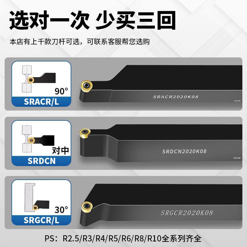 数控圆弧车刀SRACR/SRDCN/SRGCR外圆刀杆R4/R5/R6/R8/R10车刀片R3