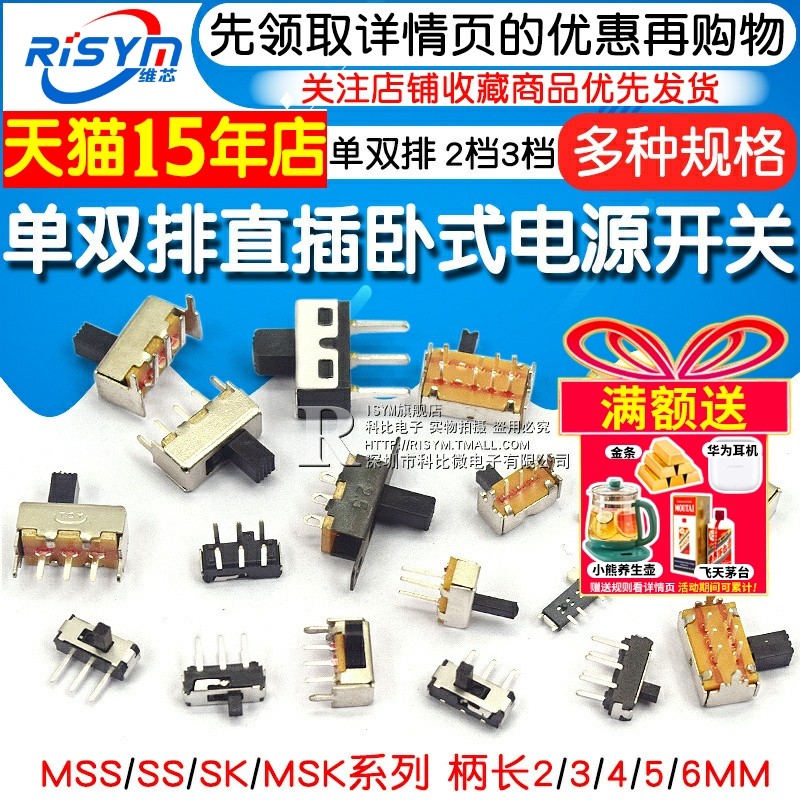 拨动开关单双排直插卧式小微型电源开关滑动档位拔动波动波段2档3
