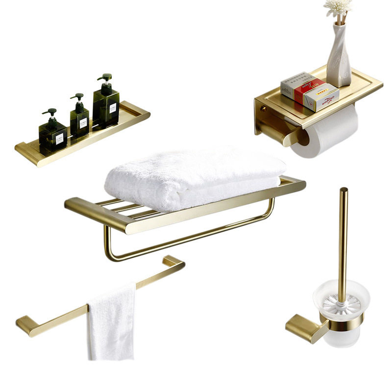 拉丝金色毛巾架卫浴五金挂件套装304不锈钢浴室置物架浴巾架