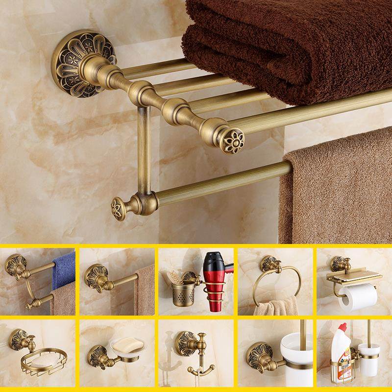 女皇世家仿古浴巾架毛巾架套装卫生间黄铜法式浴室中古风卫浴挂件