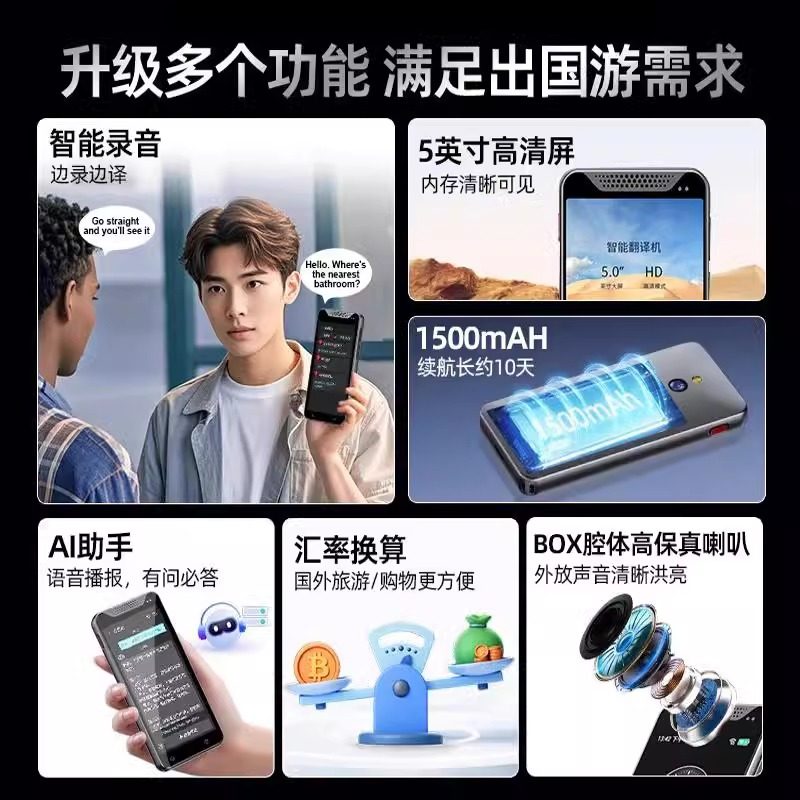 推荐理由:德国可支持离线智能翻译机大屏精准翻译实时对话外语出国旅游神器