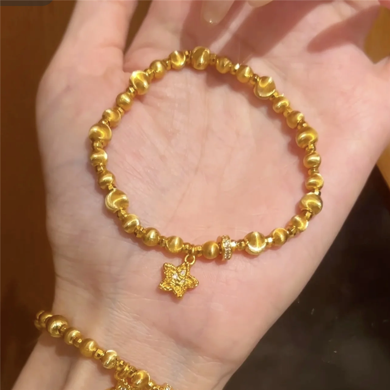 古法爆闪沙金拉丝猫眼锤纹星星蹦迪珠手链女跑环转运珠弹力绳手串