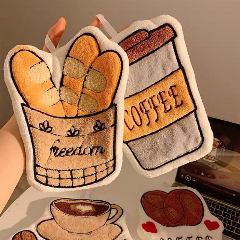 推荐理由:法式面包可爱法棍擦手巾挂式珊瑚绒吸水不掉毛家用手帕毛巾抹布J