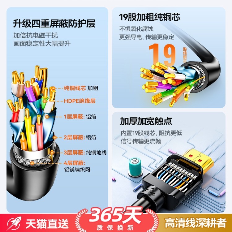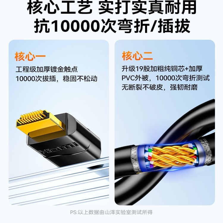 推荐理由:4K/60Hz高清 四重屏蔽抗干扰 耐用加厚镀金