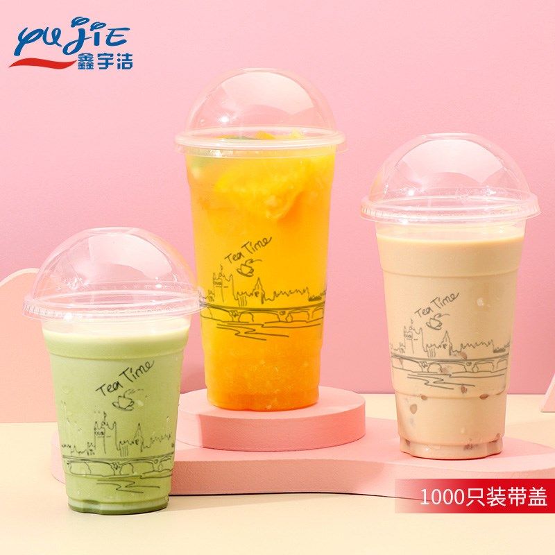 鑫宇洁加厚一次性奶茶杯塑料杯定制冷饮果汁杯带盖500ml1000只