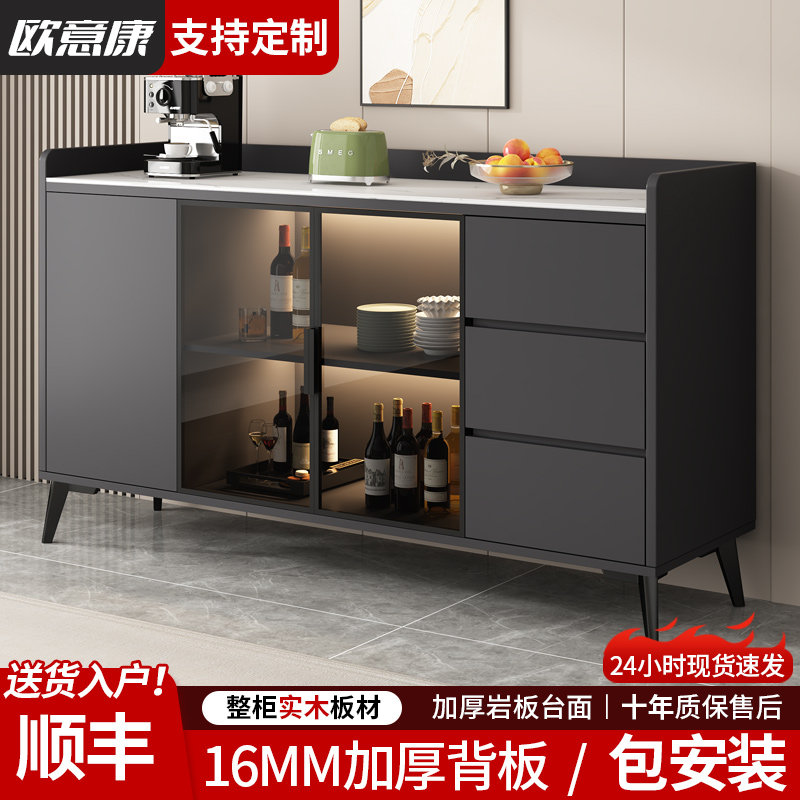 实木餐边柜现代简约靠墙一体轻奢定制客厅岩板储物柜厨房橱柜收纳