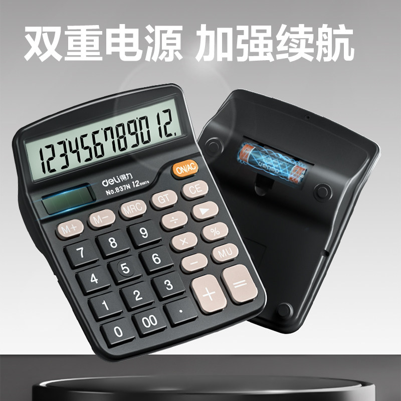 得力837计算器办公用会计用太阳能学生用带语音大学财务小号便携双电源商用计算机器文具办公用品大号专用