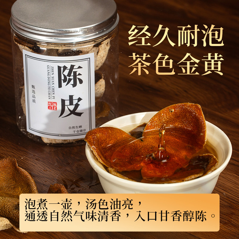 推荐理由:自用收藏三年广东老陈皮泡茶大红皮茶枝柑碎皮橘皮礼盒装送礼泡水