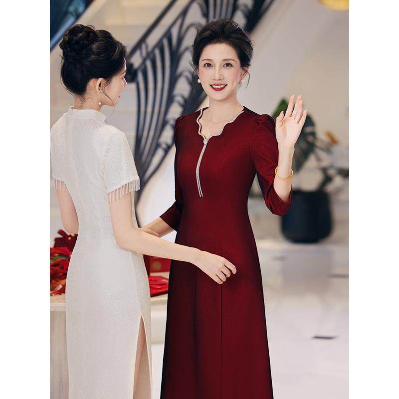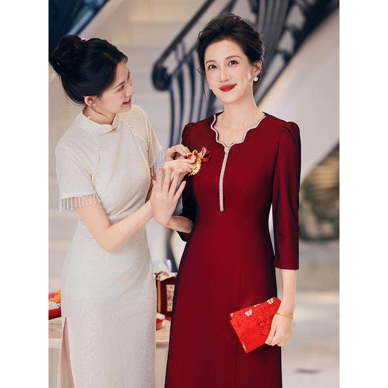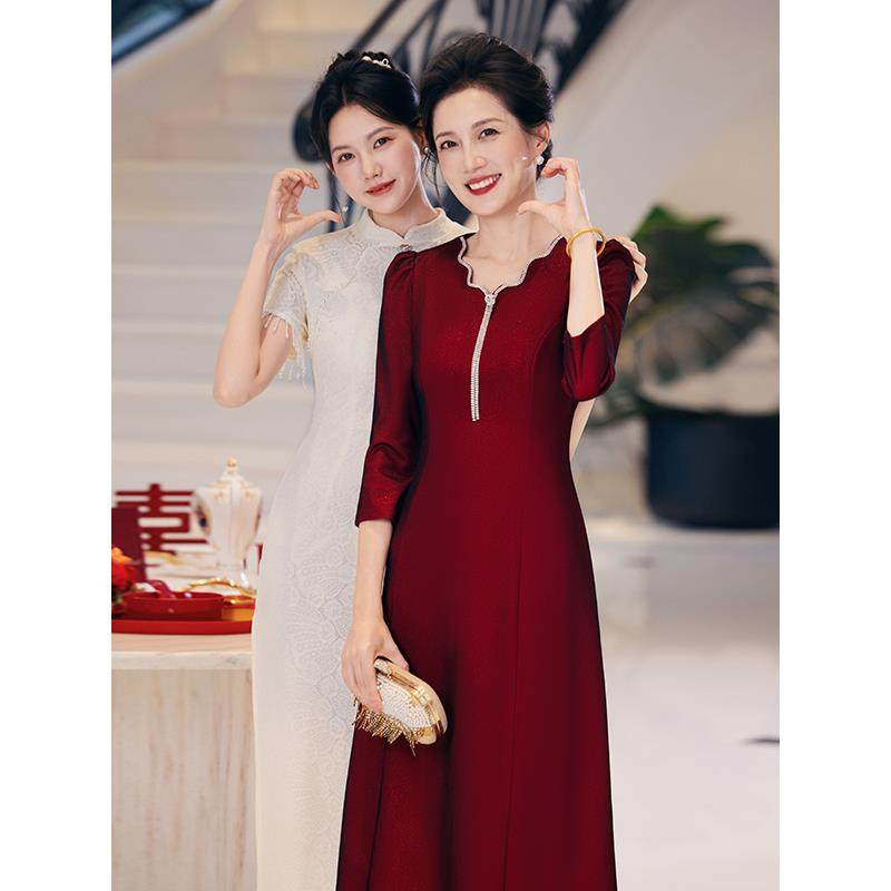 2025新款喜妈妈装婚宴年轻礼服高端婆婆旗袍晚装敬酒结婚服连衣裙