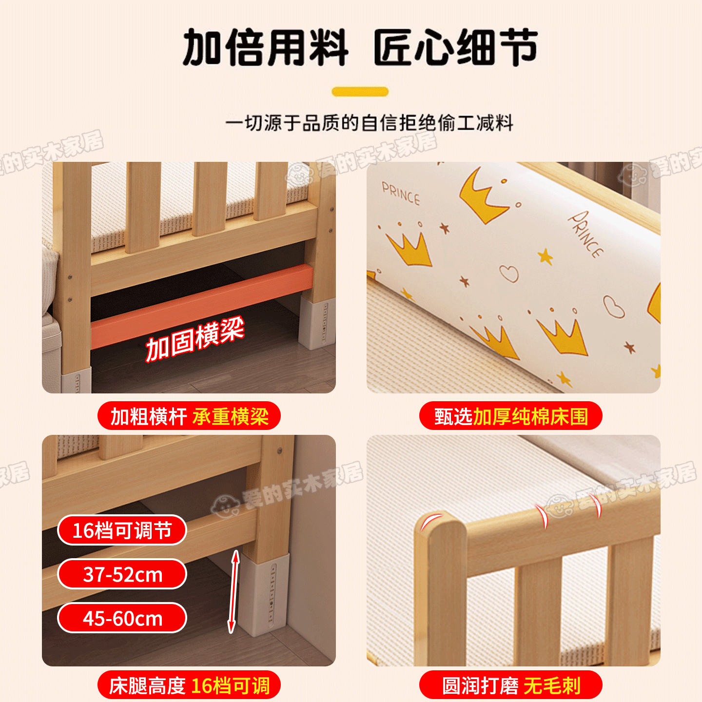 儿童带护栏拼接床全实木床边加宽大人可睡拼接床加宽拼接床婴儿床