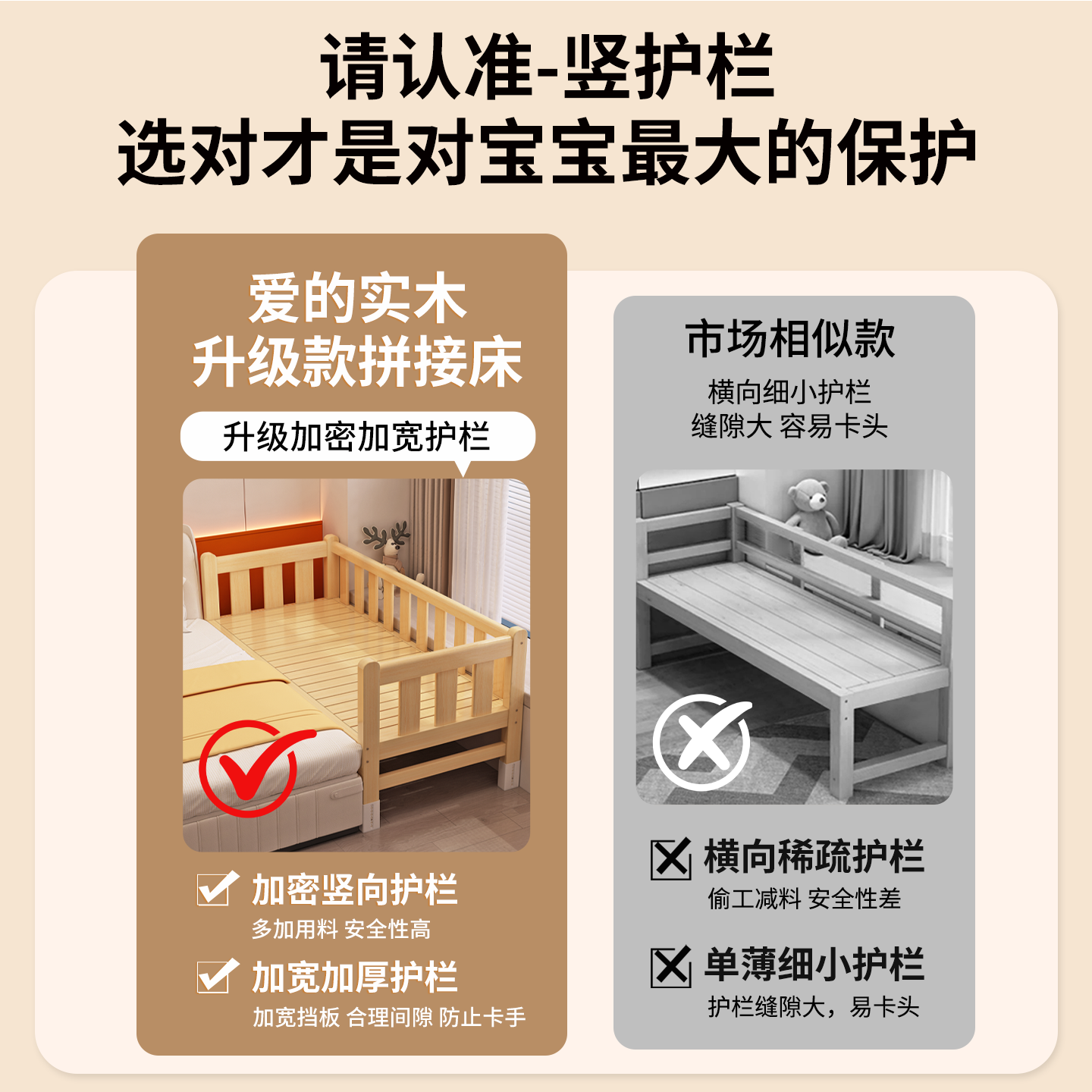 推荐理由:儿童带护栏拼接床全实木床边加宽大人可睡拼接床加宽拼接床婴儿床
