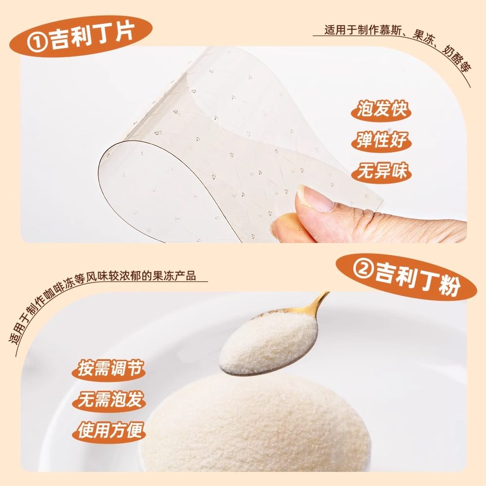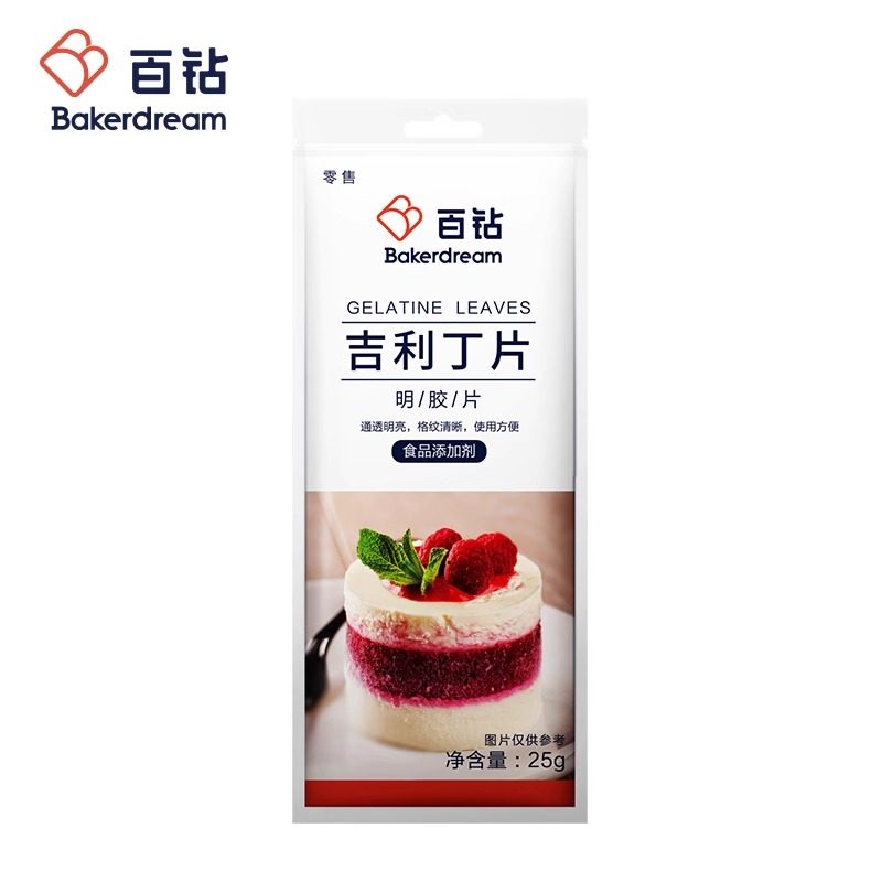 吉利丁片百钻食用明胶片家用烘焙凝胶儿童自制奶酪棒果冻慕斯蛋糕