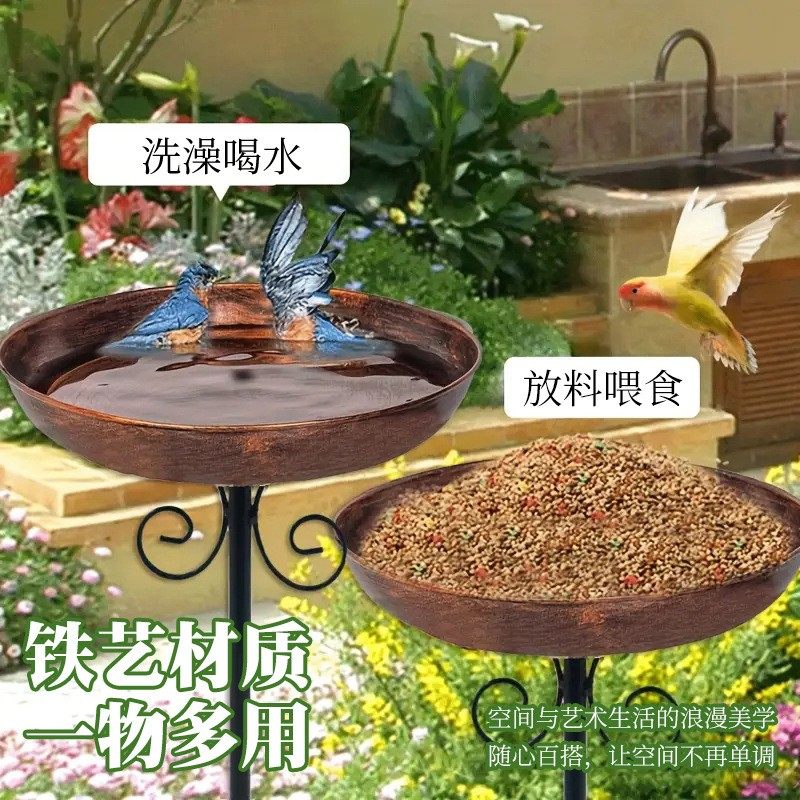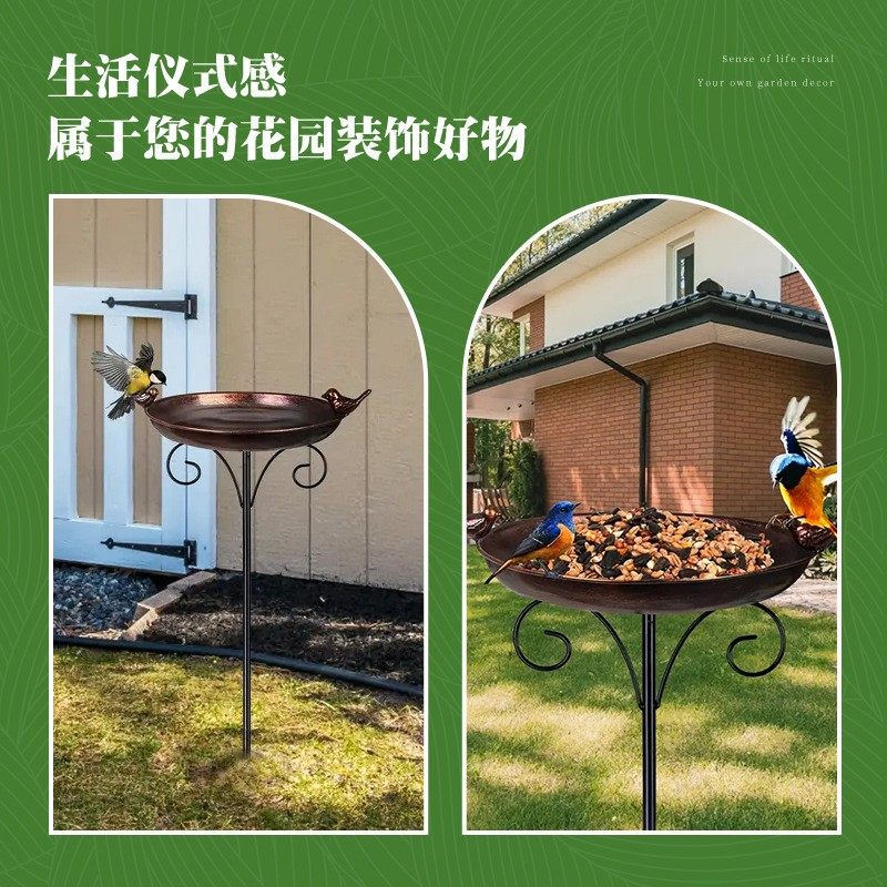 推荐理由:爆款新品户外庭院小鸟喂食器喂水器蜂鸟鸟澡盆铁艺装饰地插工艺品