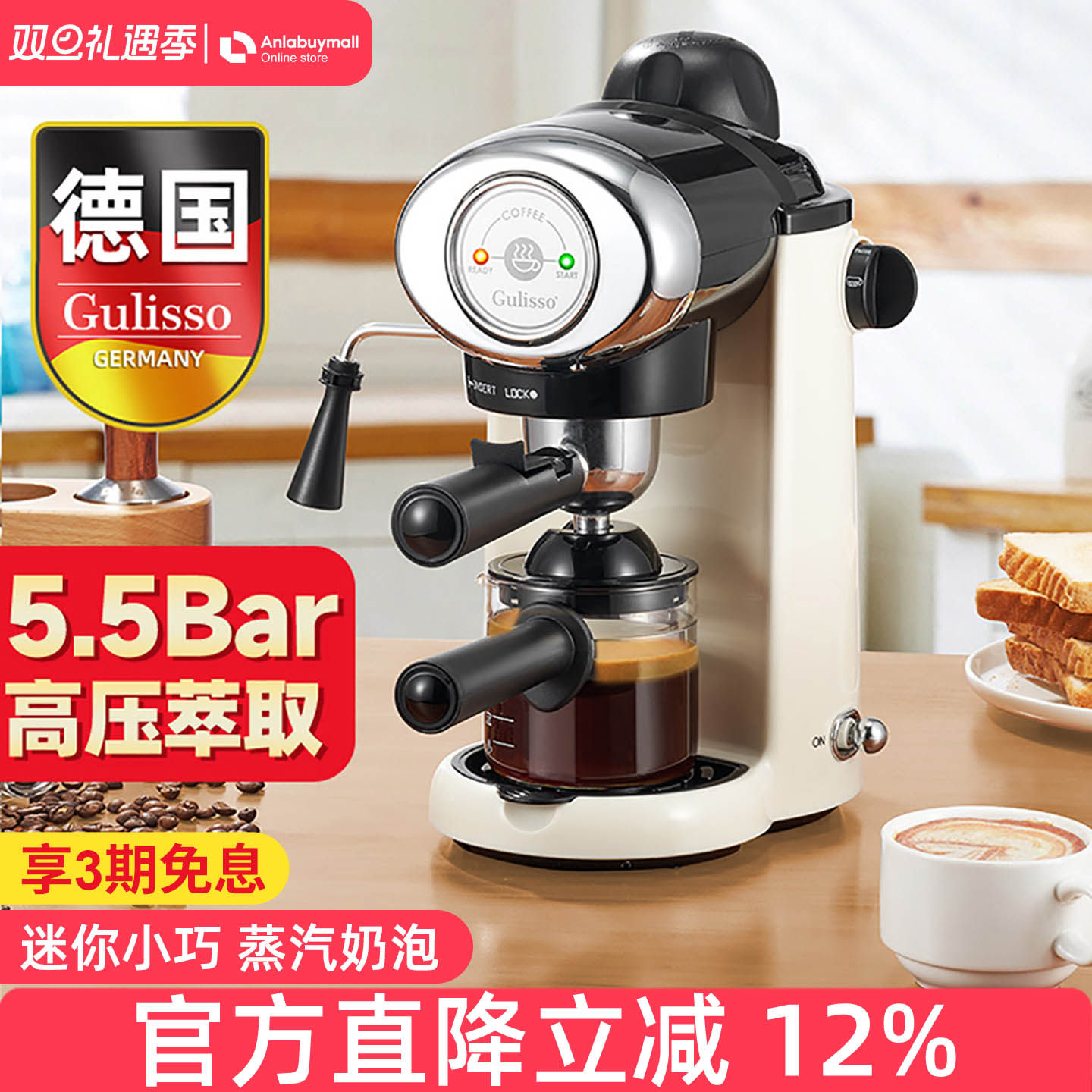 德国小型迷你咖啡机 蒸汽打奶泡 5.5bar高压
