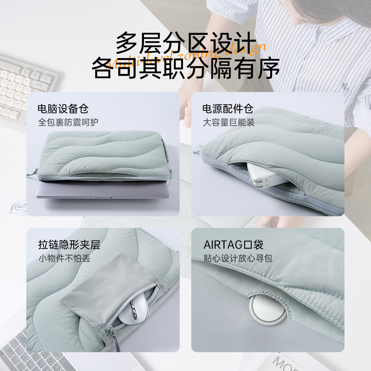 推荐理由:绿巨能电脑包内胆包笔记本14寸13.3寸13.6寸防摔防震手提包女M4适用苹果MacBook Pro/Air华为Matebook豆豆包