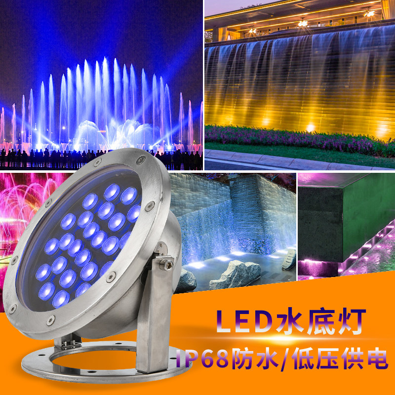 水底灯LED防水24v不锈钢七彩喷泉灯水下灯水池景观灯假山鱼池射灯