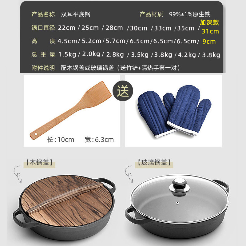 推荐理由:铸铁平底锅煎锅不粘无涂层烙饼锅水煎包加厚手工生铁锅电磁炉通用