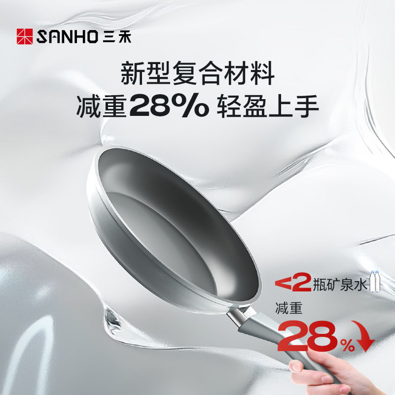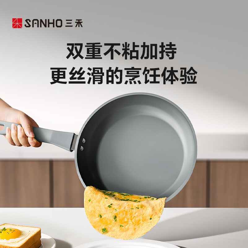 三禾0氟涂层钻石钛陶瓷不粘煎盘家用平底锅燃气灶电磁炉通用