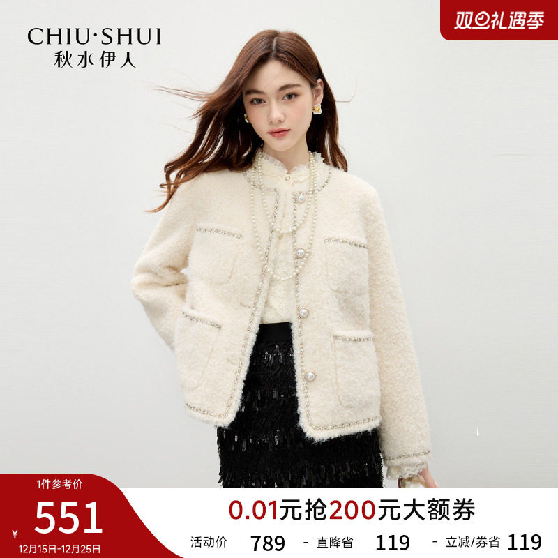秋水伊人气质小香风仿皮草短外套2025年冬季新款优雅百搭链条上衣
