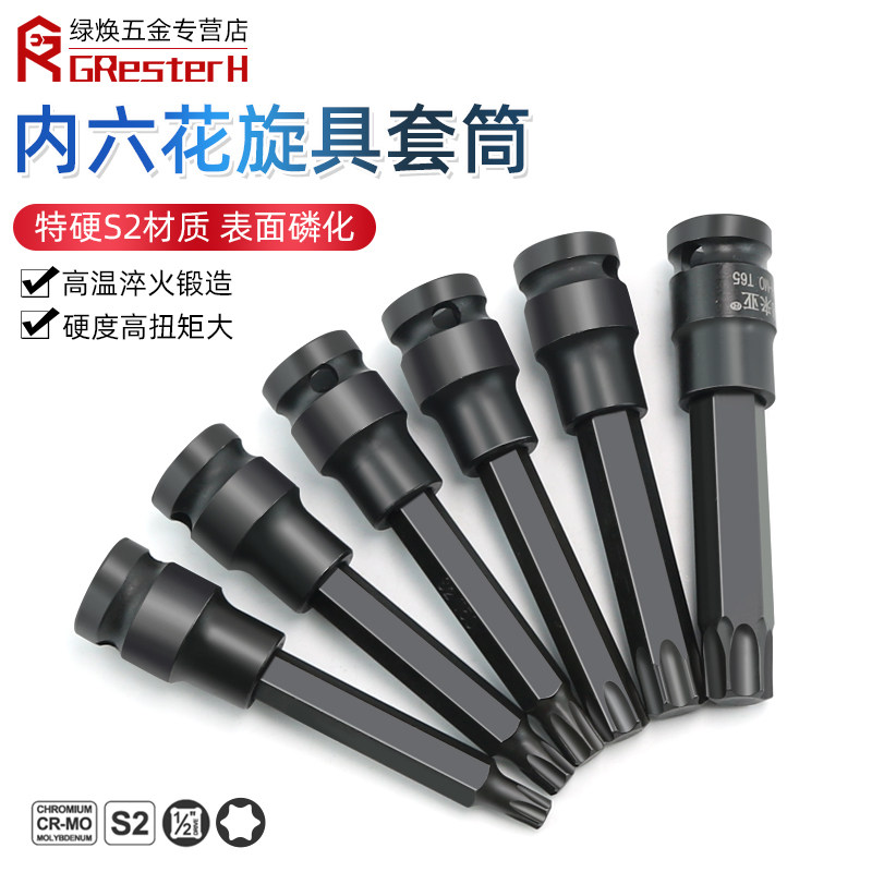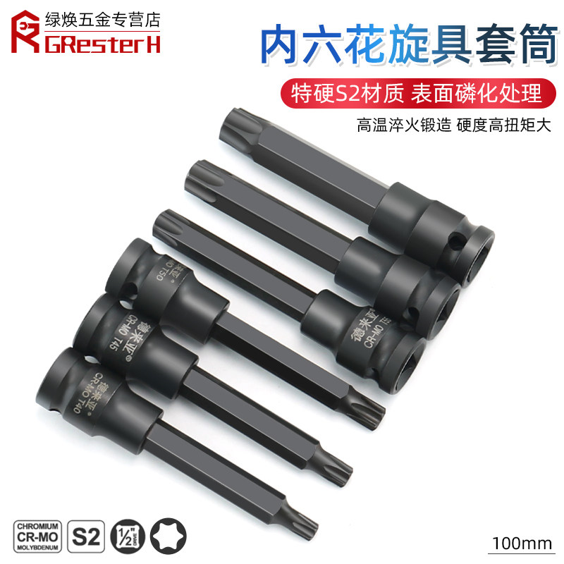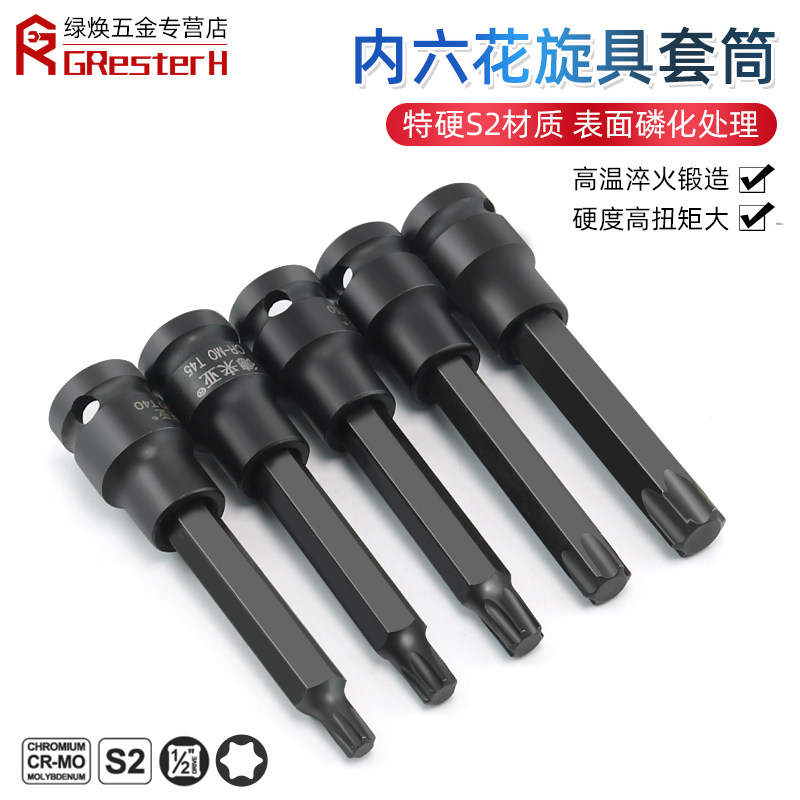 推荐理由:加硬内六花风炮批头 t40花角t30内六角t55套筒梅花旋具套筒S2套头