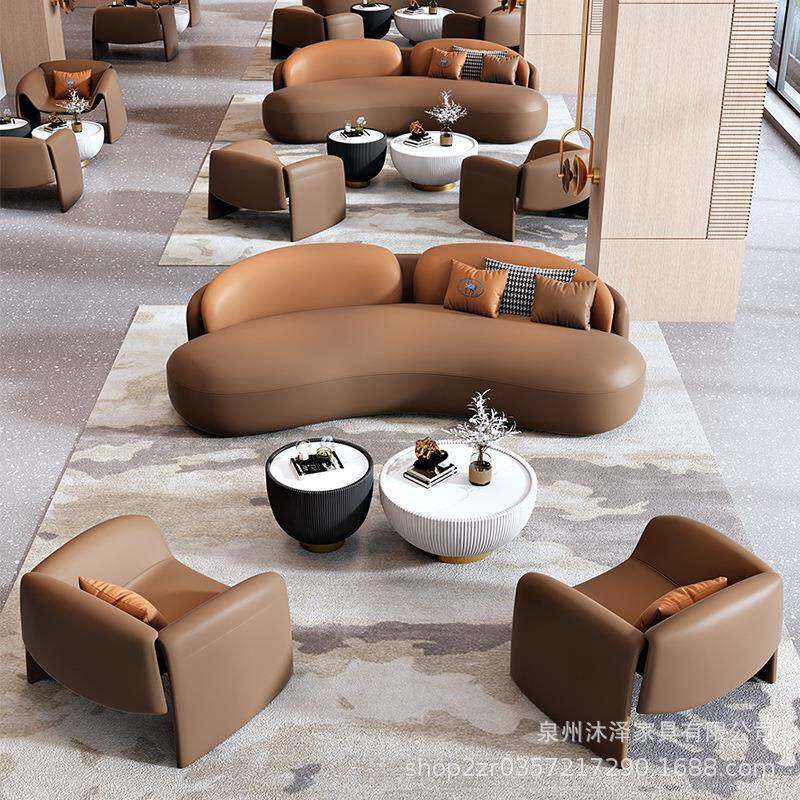 北欧洽谈沙发组合酒店大堂接待办公室会客沙发售楼处商铺弧形沙发