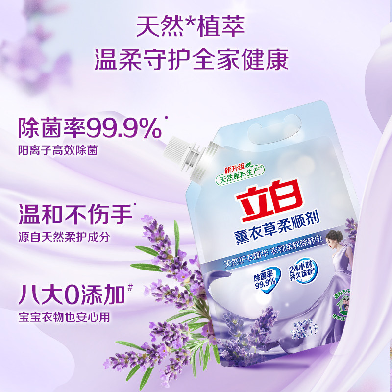 推荐理由:立白薰衣草柔顺剂除菌除静电柔软持久留香衣物护理液家用柔顺剂