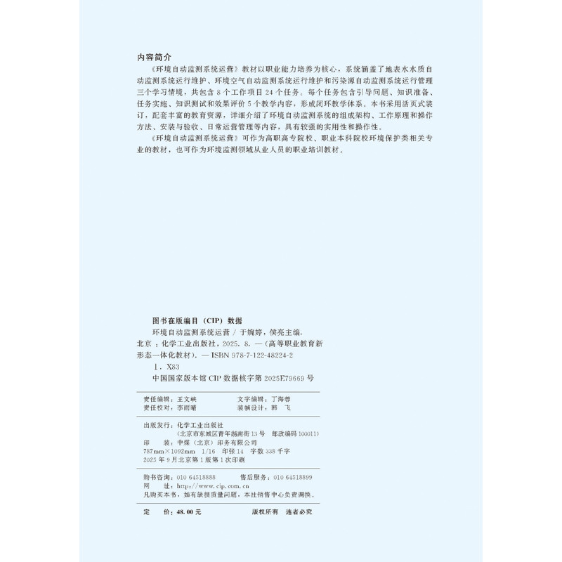 环境自动监测系统运营 于婉婷、侯亮 主编大学教材化学工业出版社凤凰新华书店旗舰店
