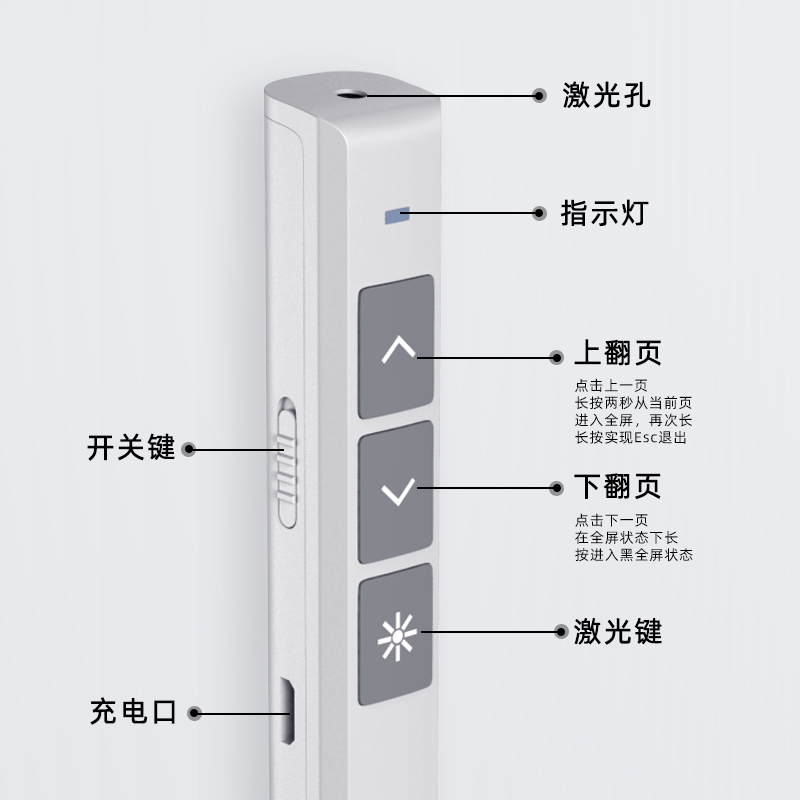 激光翻页笔教师用多功能充电ppt遥控器笔教学器演讲投影仪笔多媒体希沃一体机白板上课课件讲课红外线电脑笔