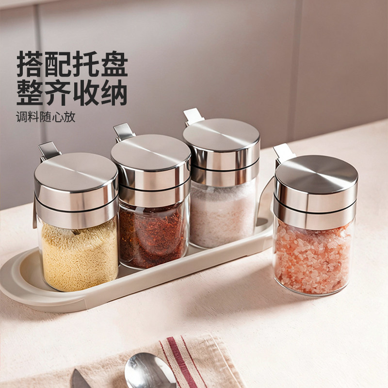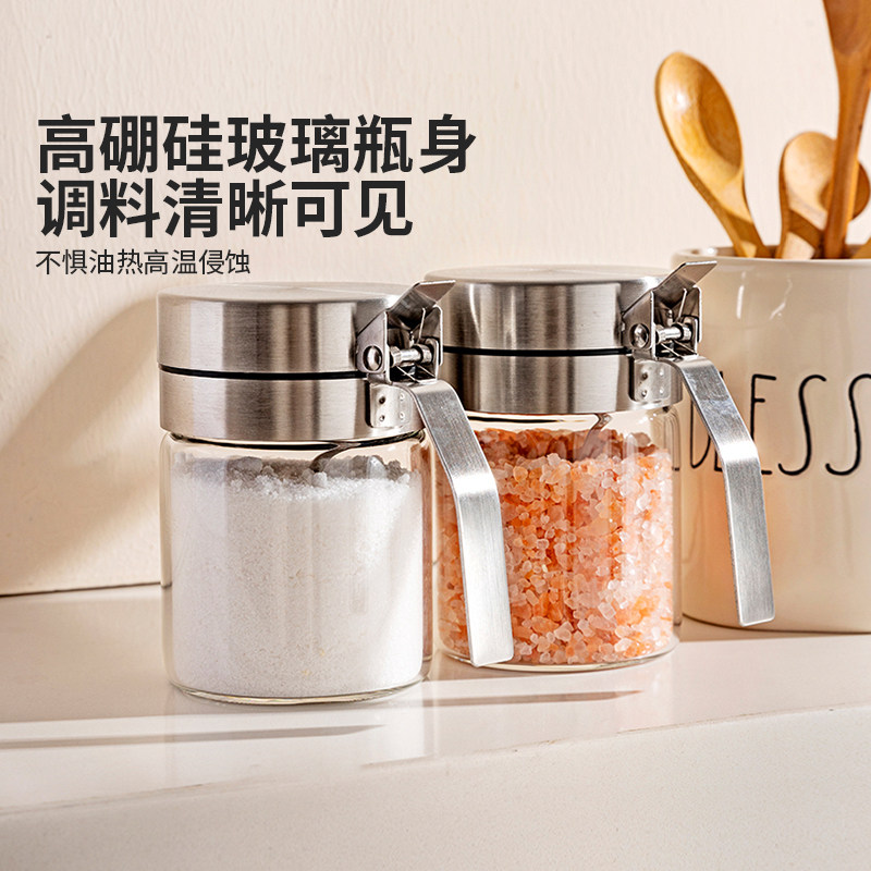 摩登主妇304不锈钢调料罐盐罐家用调味瓶罐玻璃厨房装调料收纳盒
