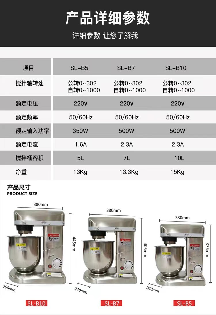 推荐理由:盛利商用5升7升10升鲜奶机/搅拌机和面机/拌馅机台式搅拌机厨师机