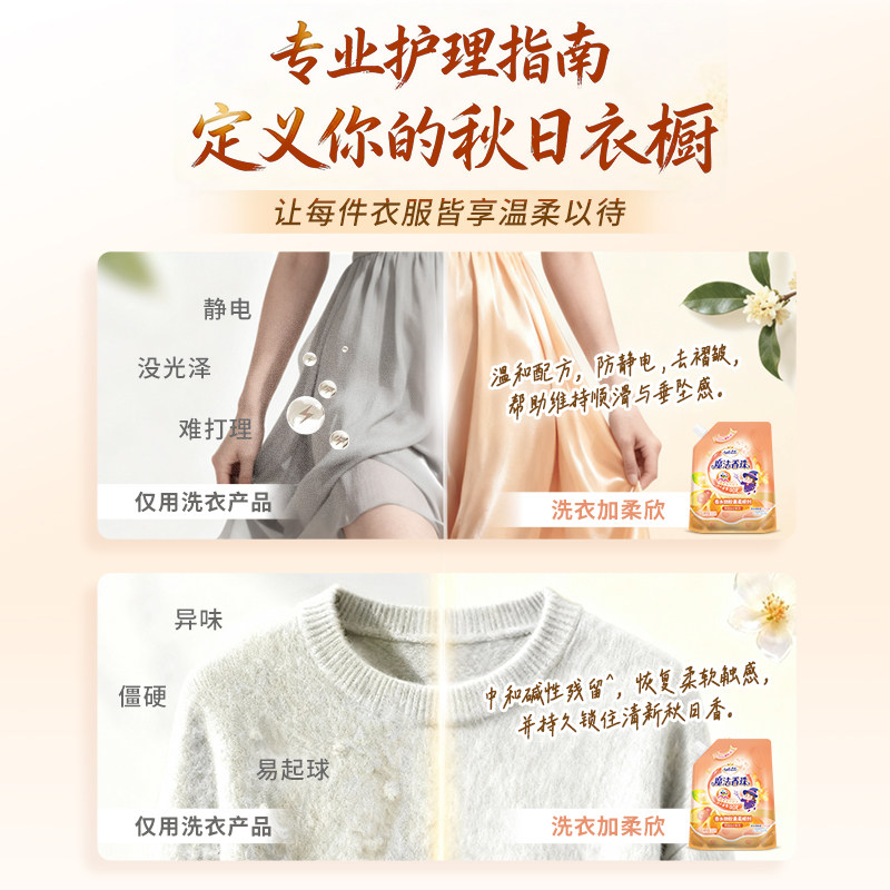 激浪柔顺剂持久留香衣物护理液家用洗衣服柔软防静电袋装柔软剂