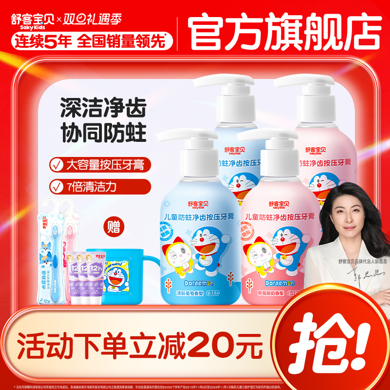 哆啦A梦联名 舒客宝贝儿童150克按压牙膏含氟防蛀2到12岁官方正品