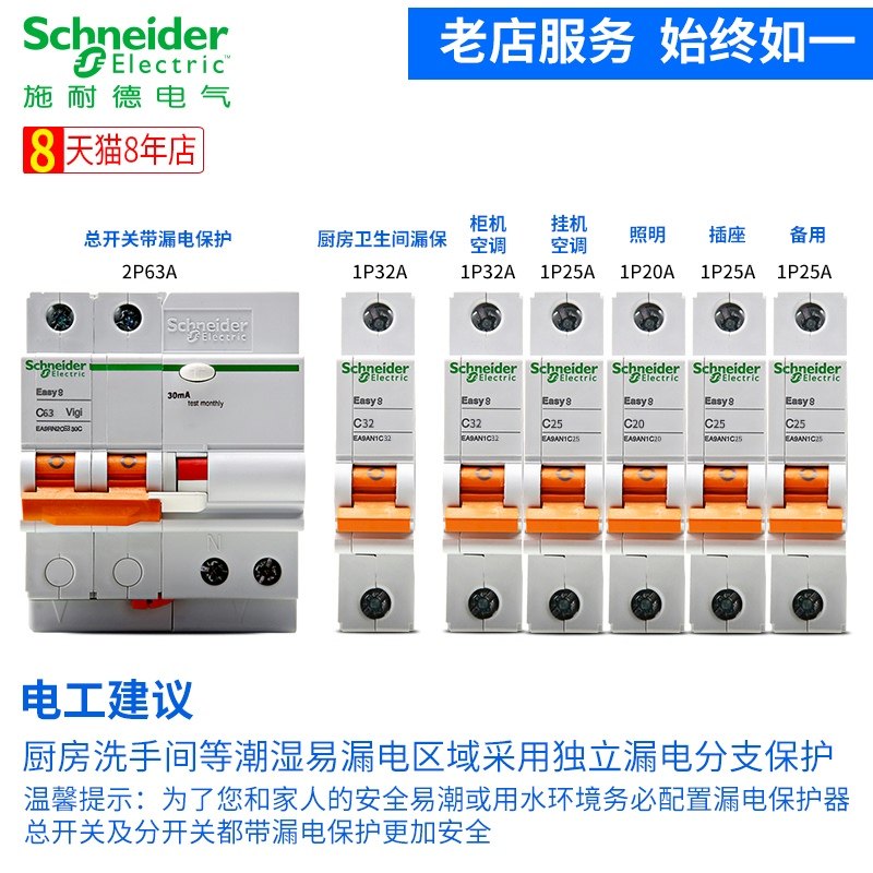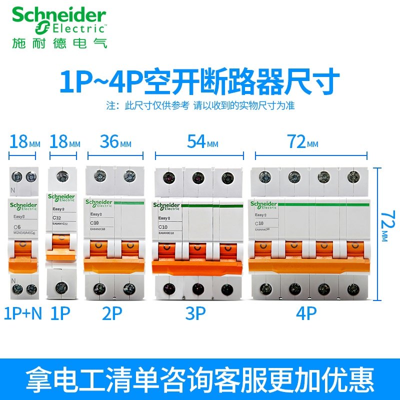 推荐理由:施耐德E9空气开关3P断路器1P+N家用40安100a63A带漏电保护器4P 2P