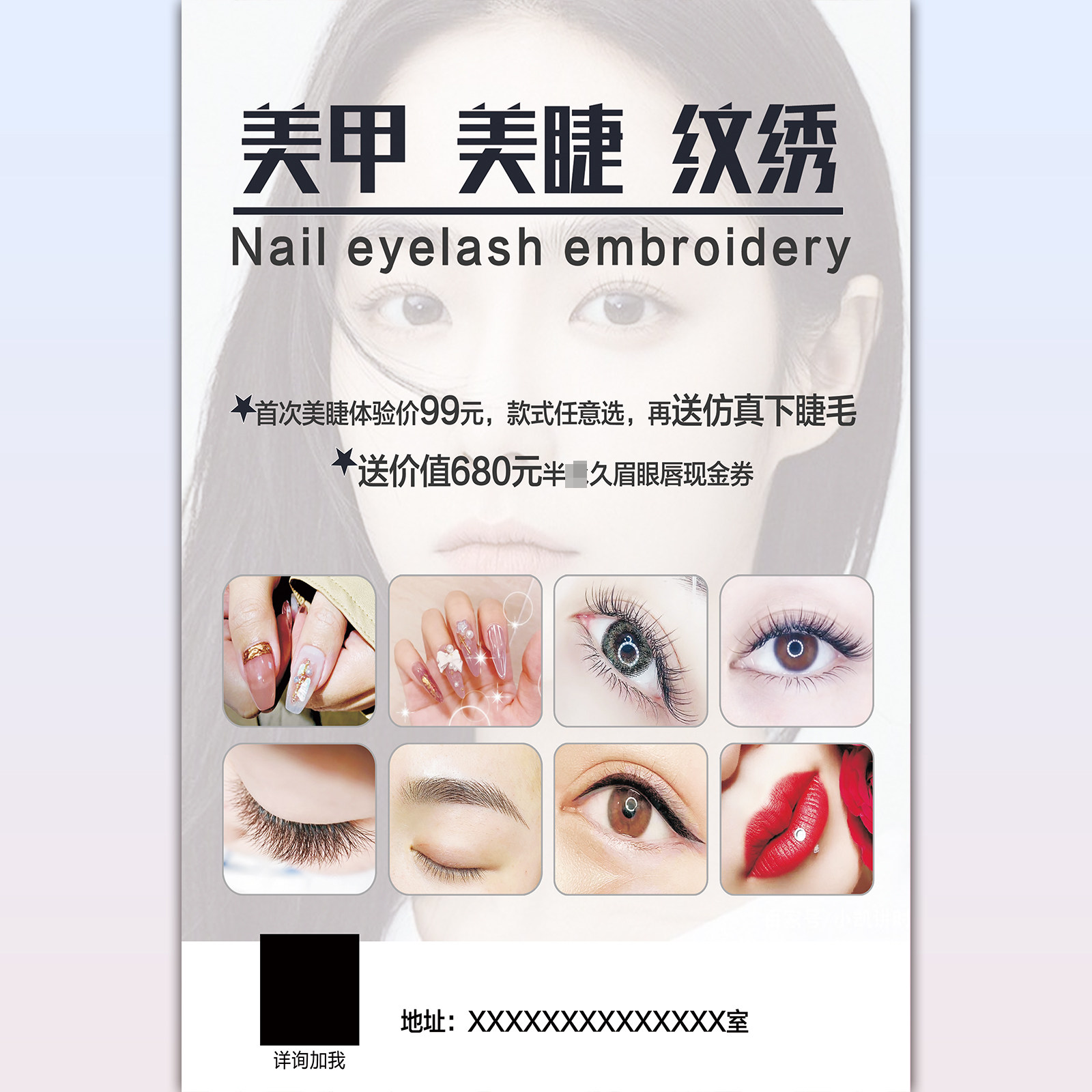 美甲美睫广告贴纸海报宣传图美甲美睫广告墙贴kt板美甲店海报定制
