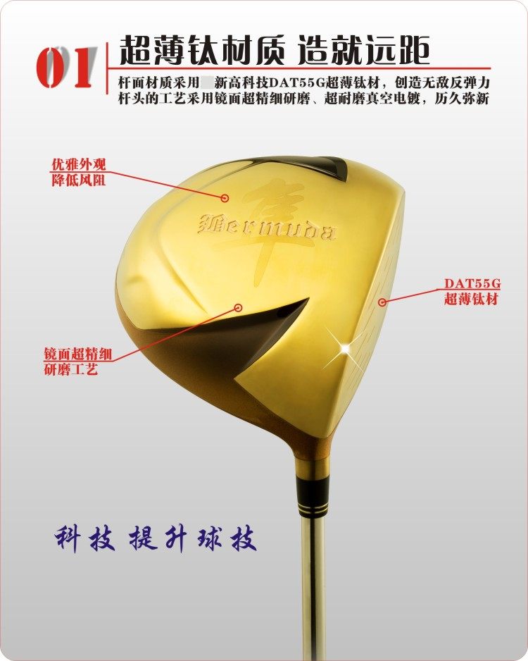 推荐理由:正品 日本Bermuda一号木超标杆高反发高尔夫球杆/不含帽套#清仓