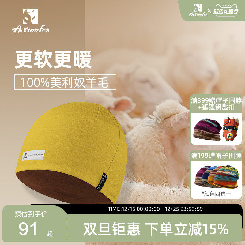 Actionfox快乐狐狸冷帽美利奴羊毛运动户外徒步滑雪跑步比尼AB帽