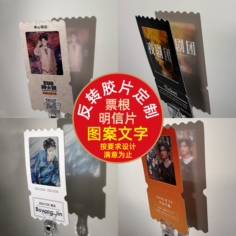 反转胶片定制做异型镂空照片明星演唱会纪念透光小卡电影纸质票根