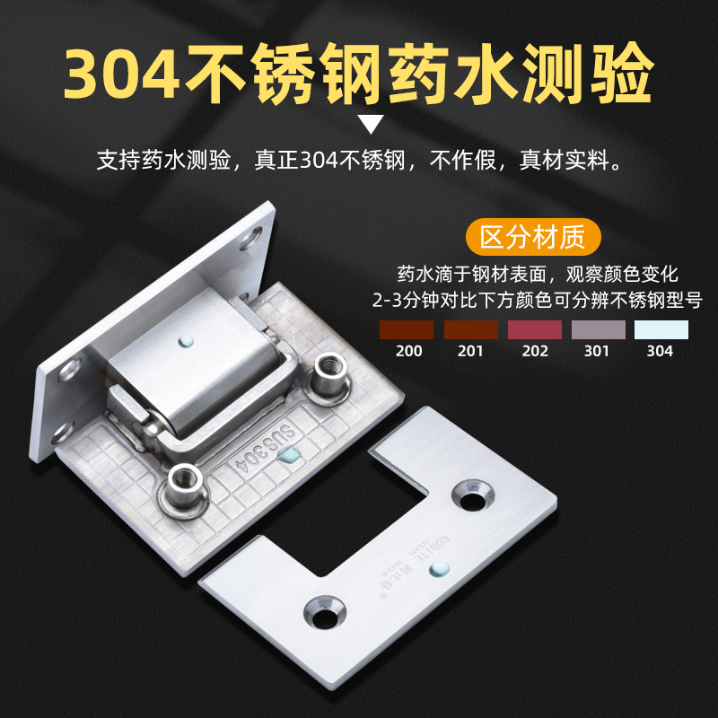304不锈钢浴室夹90度黑色玻璃门夹180度铰链折页淋浴房配件合页