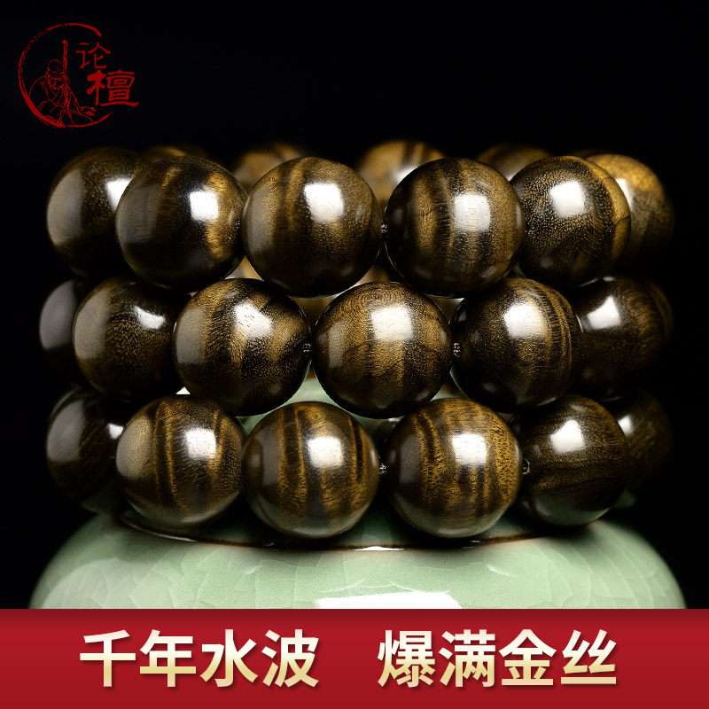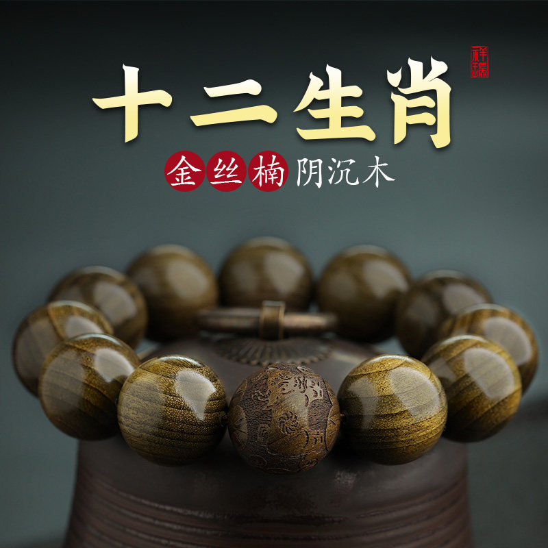 金丝楠木手串阴沉木老料水波纹乌木男士礼物文玩佛珠十二生肖手链