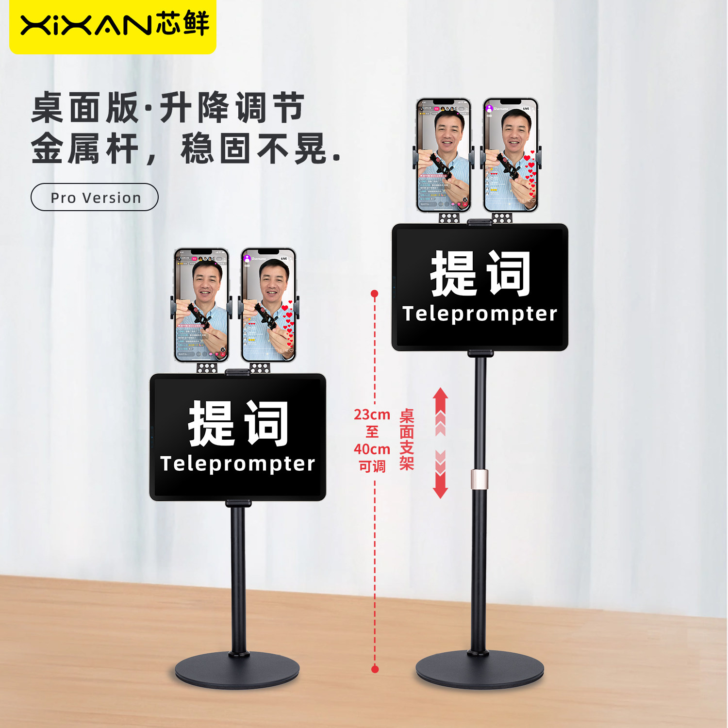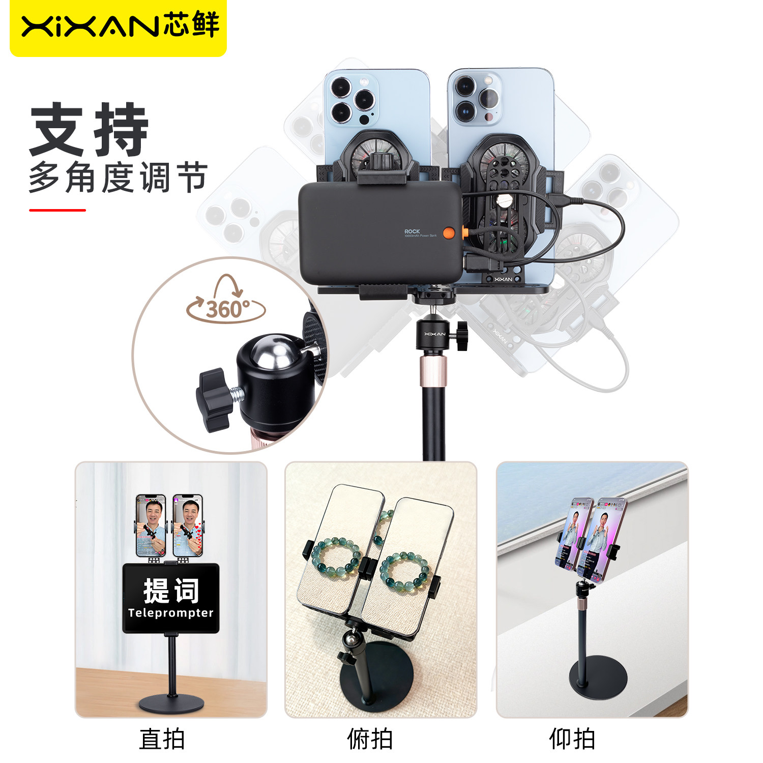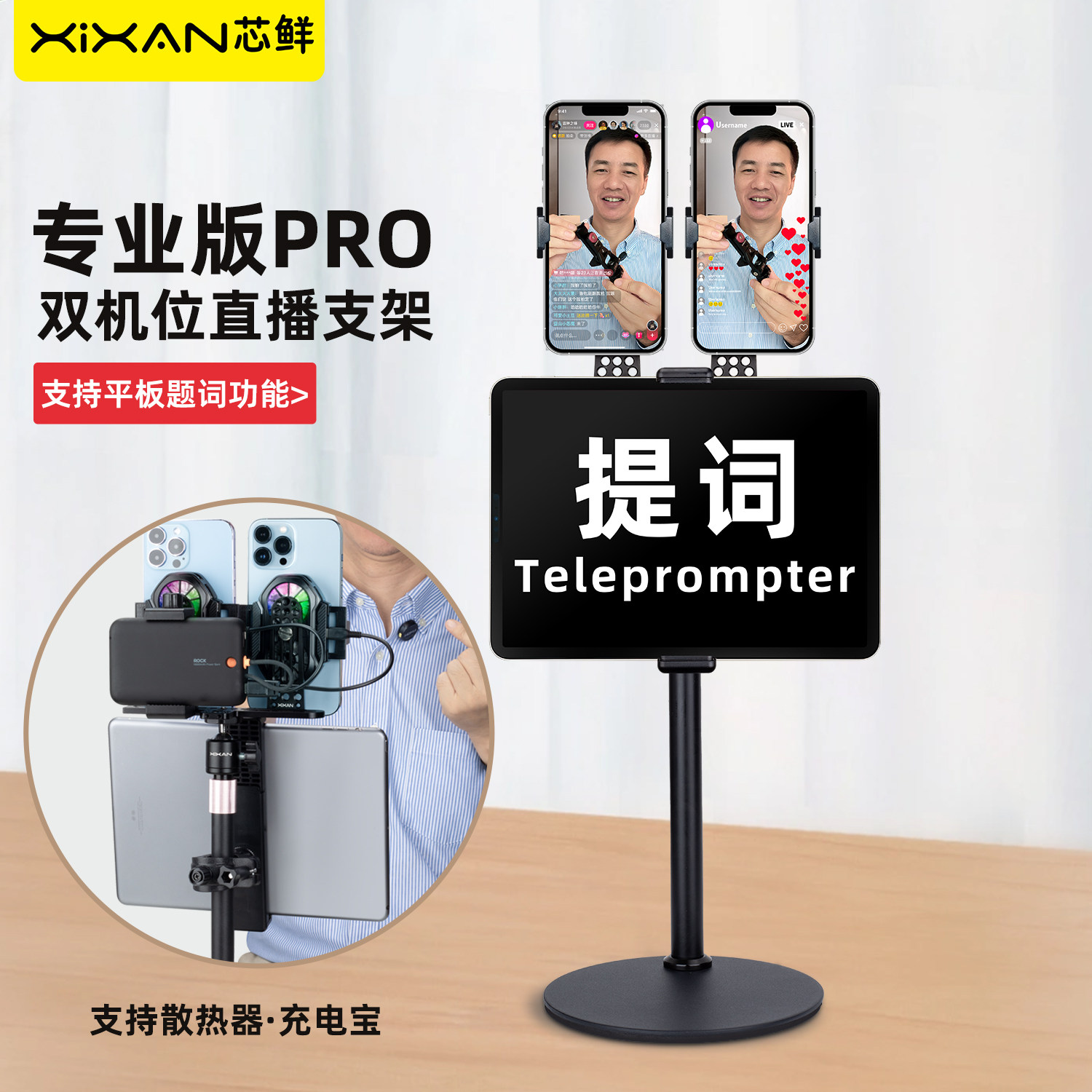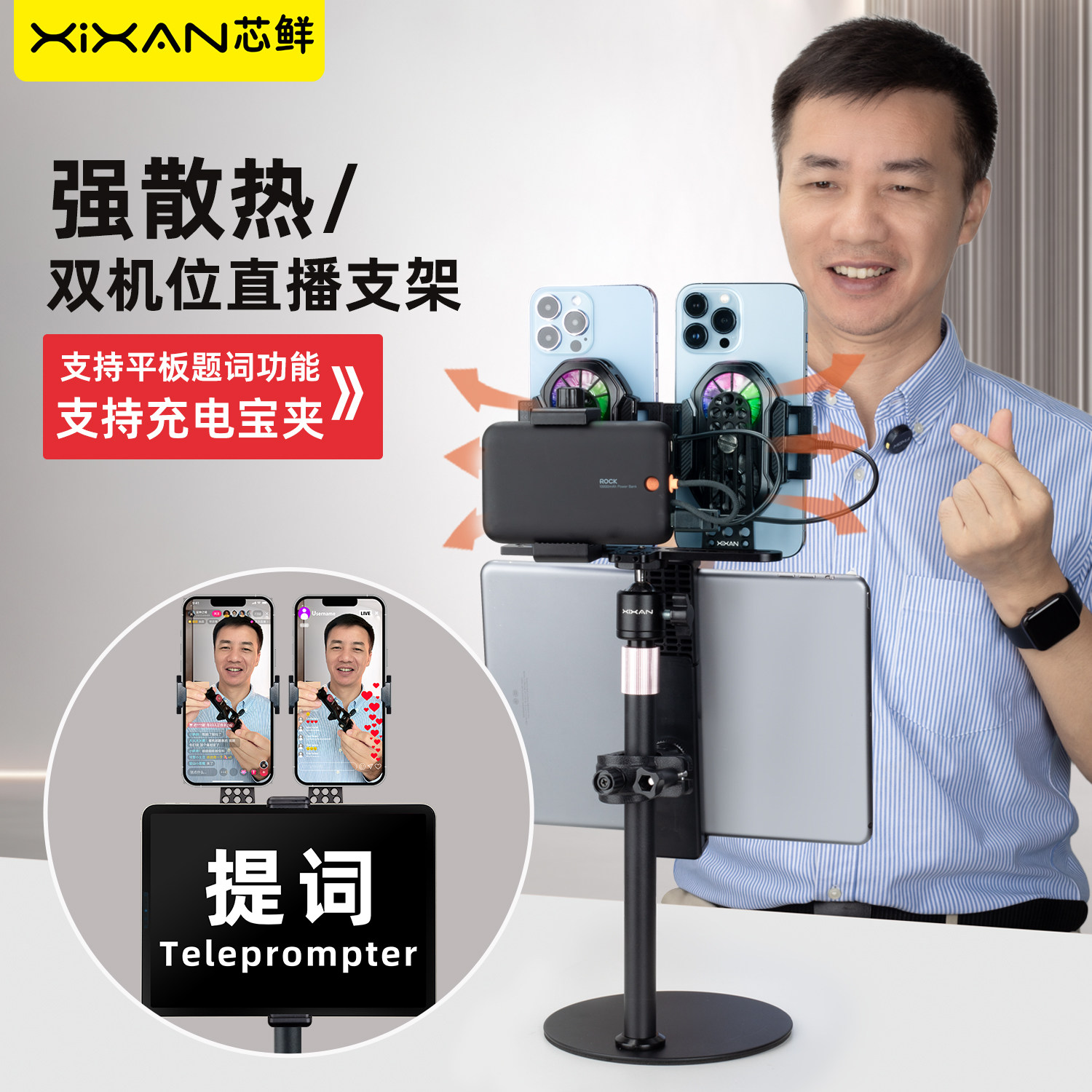 芯鲜PS02S双机位散热直播提词支架双手机散热器平板提词器夹子桌面落地主播题词器支撑架走播坐播站播三脚架