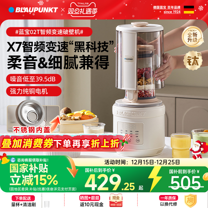 德国蓝宝柔音破壁机家用全自动豆浆机静低噪音无渣辅食料理机新款