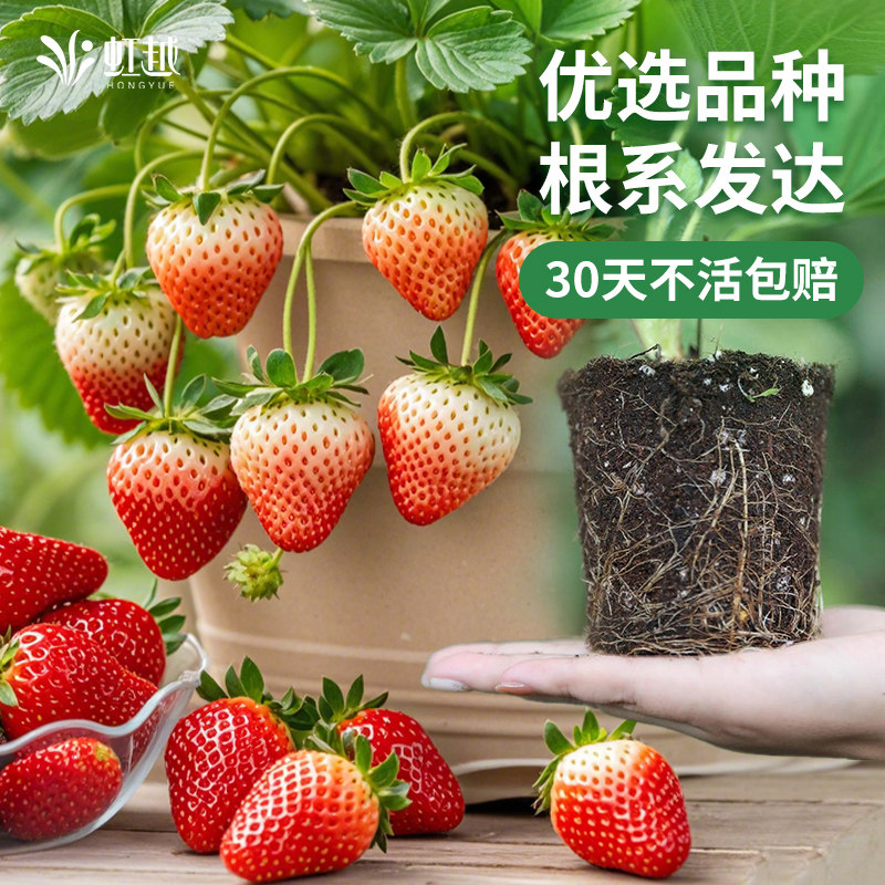 虹越草莓苗秧盆栽家庭阳台冬季结果苗黑珍珠红颜天使粉玉丹东99